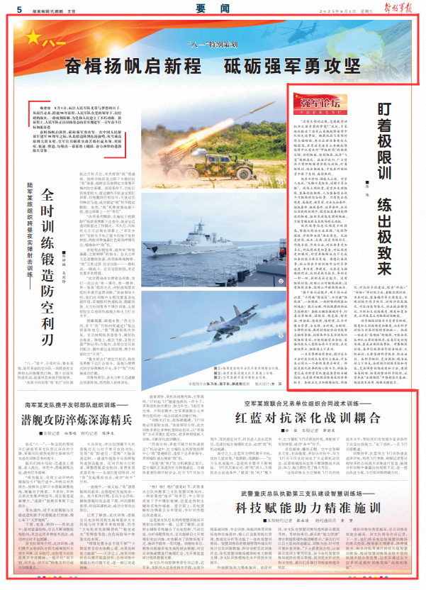 奮楫揚帆啟新程,砥礪強軍勇攻堅。在中國人民解放軍建軍98周年之際,從北疆邊陲到東海前哨,從雪域高原到大漠戈壁,全軍官兵瞄準(zhǔn)實戰(zhàn)苦練打贏本領(lǐng),用履痕、航跡、彈道,勾勒出一幕幕將士踴躍、奮力沖鋒的蓬勃練兵景象。