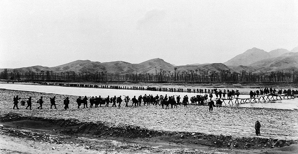 1939年初,八路軍第120師官兵通過唐河向冀中挺進。