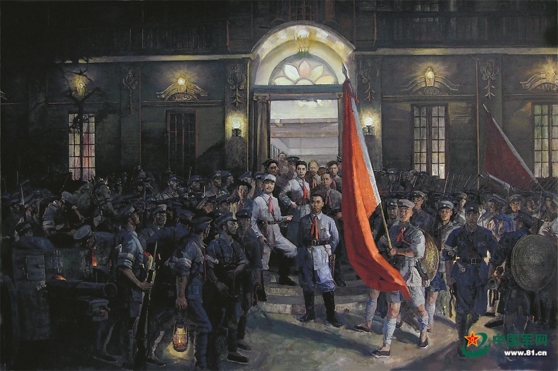1927年8月1日凌晨2時,當“炮兵連”(起義前委指揮部的代號)用軍號發(fā)出的起義號令劃破夜幕,2萬多頸扎紅色布條、臂縛白毛巾的起義官兵,向數(shù)十個敵軍盤踞之地發(fā)起了攻擊。