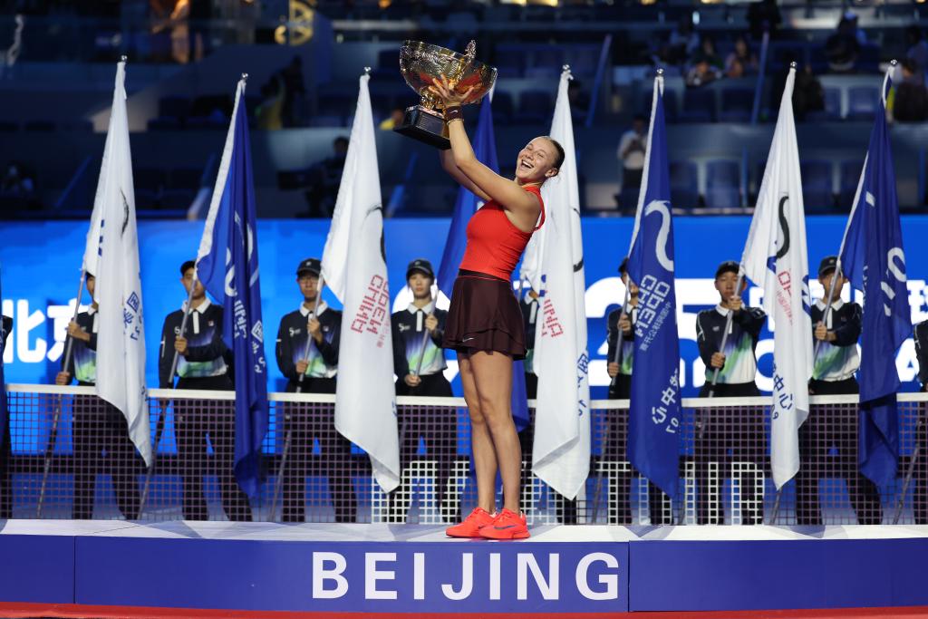 捧起中國網(wǎng)球公開賽女單冠軍獎(jiǎng)杯