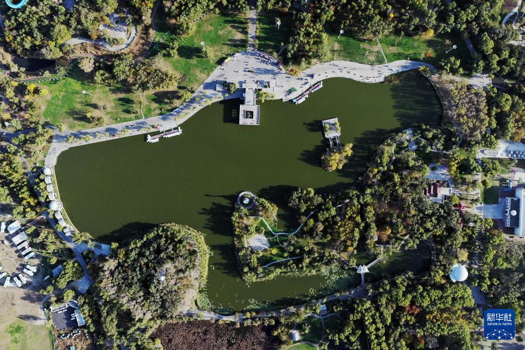這是10月7日拍攝的哈爾濱太陽島國家濕地公園景色(無人機(jī)照片)。
