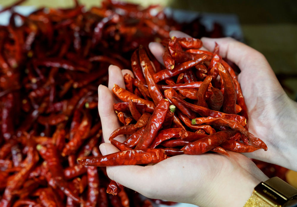這是2022年11月7日在第五屆進(jìn)博會(huì)食品及農(nóng)產(chǎn)品展區(qū)拍攝的來(lái)自盧旺達(dá)的辣椒。新華社記者 劉穎 攝