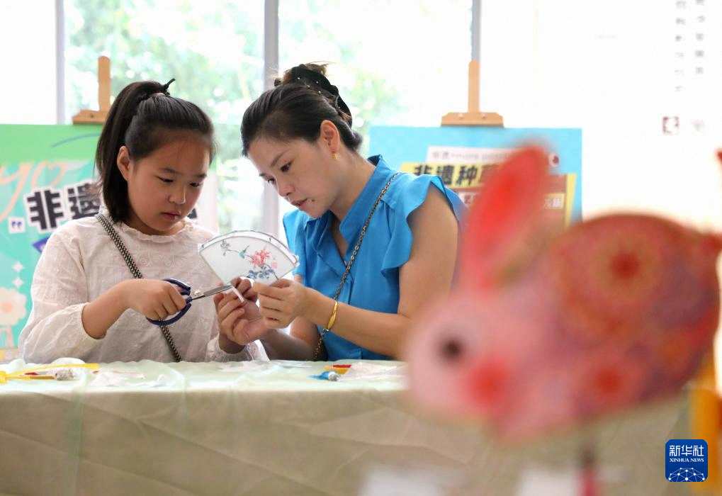10月6日,在四川省內(nèi)江市東興區(qū)西林街道,孩子們和家人一起制作中秋燈籠。新華社發(fā)(唐明潤攝)