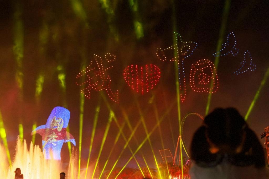 廣東珠海長隆海洋王國推出特色光影秀,為游客獻上了視覺盛宴——超600臺無人機的編隊變幻出企鵝、鯨鯊等珍稀海洋動物,結(jié)合絢爛的燈光投影以及紅色主題的節(jié)目編創(chuàng),再加上珠海科技“特產(chǎn)”無人船,360度環(huán)繞煙花效果……