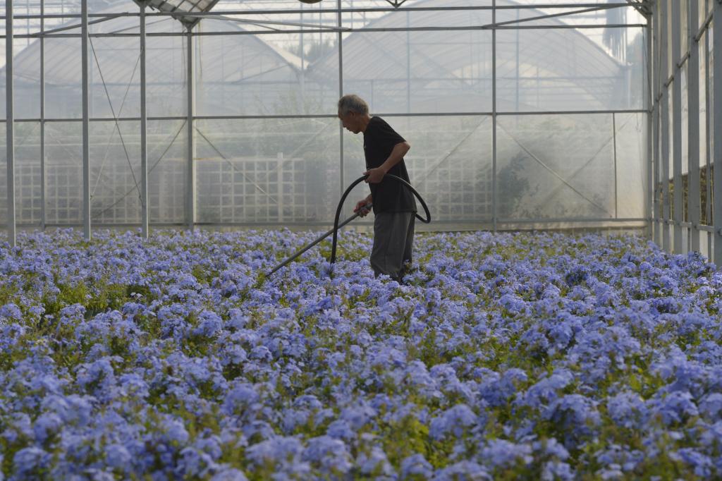 11月2日,位于海寧市鹽官鎮(zhèn)桃園村的“塔莎的花園”大棚里,員工正在進(jìn)行花卉養(yǎng)護(hù)作業(yè)。新華社記者劉力航 攝
