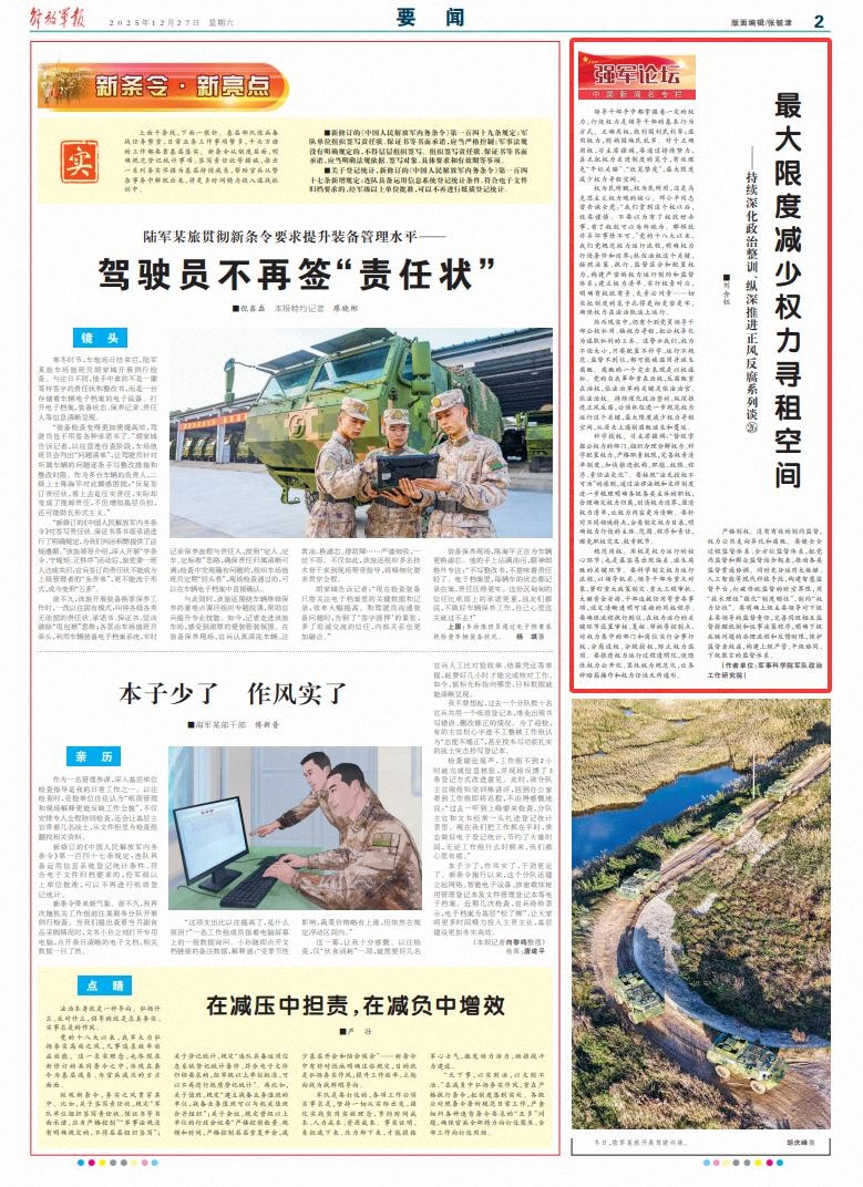 然而現(xiàn)實(shí)中,仍有個別黨員領(lǐng)導(dǎo)干部公權(quán)私用、搞權(quán)力尋租,把公權(quán)異化為謀取私利的工具。這警示我們,權(quán)力不論大小,只要配置不科學(xué)、運(yùn)行不規(guī)范、監(jiān)督不到位,都可能被濫用并滋生腐敗。腐敗的一個突出表現(xiàn)是以權(quán)謀私。黨的自我革命重在治權(quán),反腐敗重在治權(quán),依法治軍的關(guān)鍵是依法治官、依法治權(quán)。持續(xù)深化政治整訓(xùn)、縱深推進(jìn)正風(fēng)反腐,必須抓住進(jìn)一步規(guī)范權(quán)力運(yùn)行這個關(guān)鍵,最大限度減少權(quán)力尋租空間,從源頭上遏制腐敗滋生和蔓延。
