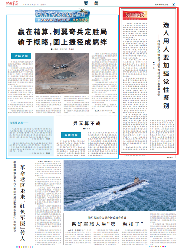 “用得正人,為善者皆勸;誤用惡人,不善者競進?!边x人用人準不準、公不公、好不好,關(guān)系部隊建設(shè)全局,關(guān)系未來戰(zhàn)爭勝負,關(guān)系人心聚散,有著十分重要的導(dǎo)向作用。干部如何選得準?習主席強調(diào):“選人用人,要加強黨性鑒別,注重考察干部的境界格局和忠誠度廉潔度?!?/p>