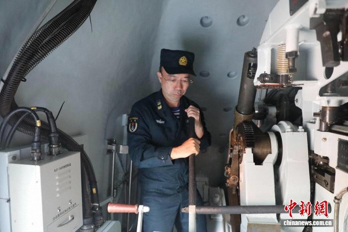 海軍資陽艦主炮區(qū)隊長馬少利在戰(zhàn)位工作。劉禮鵬 攝
