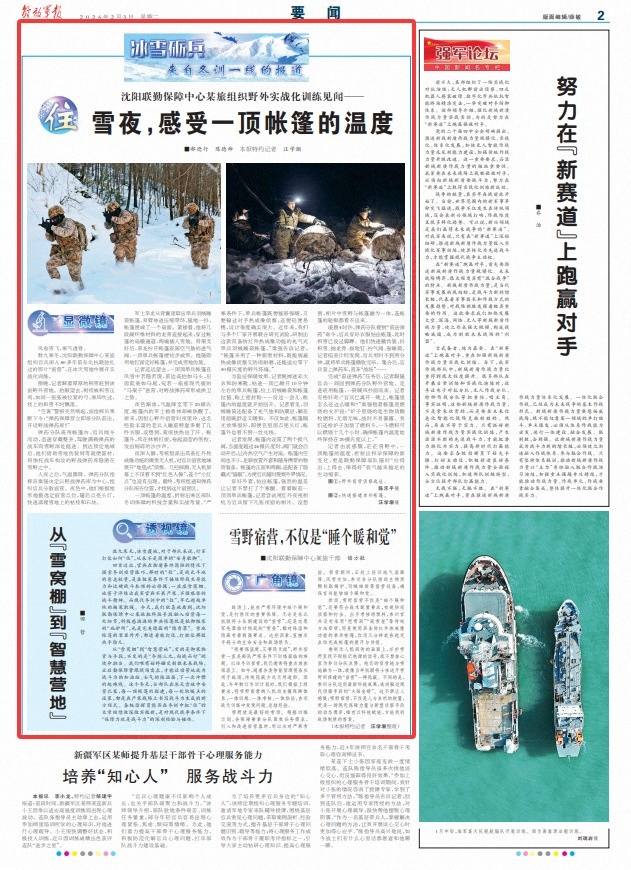記者由衷感慨,茫茫雪野中,一頂帳篷的溫度,折射出科學(xué)保障的新變化,更是聯(lián)勤保障部隊隨時“拉得出、上得去、保得好”底氣越來越足的生動縮影。