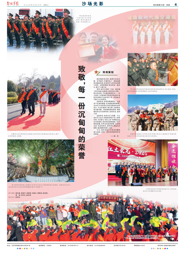 披紅戴花受表彰,敲鑼打鼓送喜報(bào)。春節(jié)前夕,軍地舉辦了一場(chǎng)場(chǎng)充滿儀式感的活動(dòng),彰顯對(duì)軍人榮譽(yù)的禮贊與尊崇。這份特殊的“新春賀禮”,暖兵心,聚士氣,勵(lì)斗志。