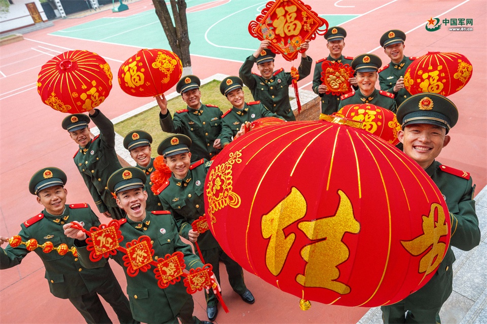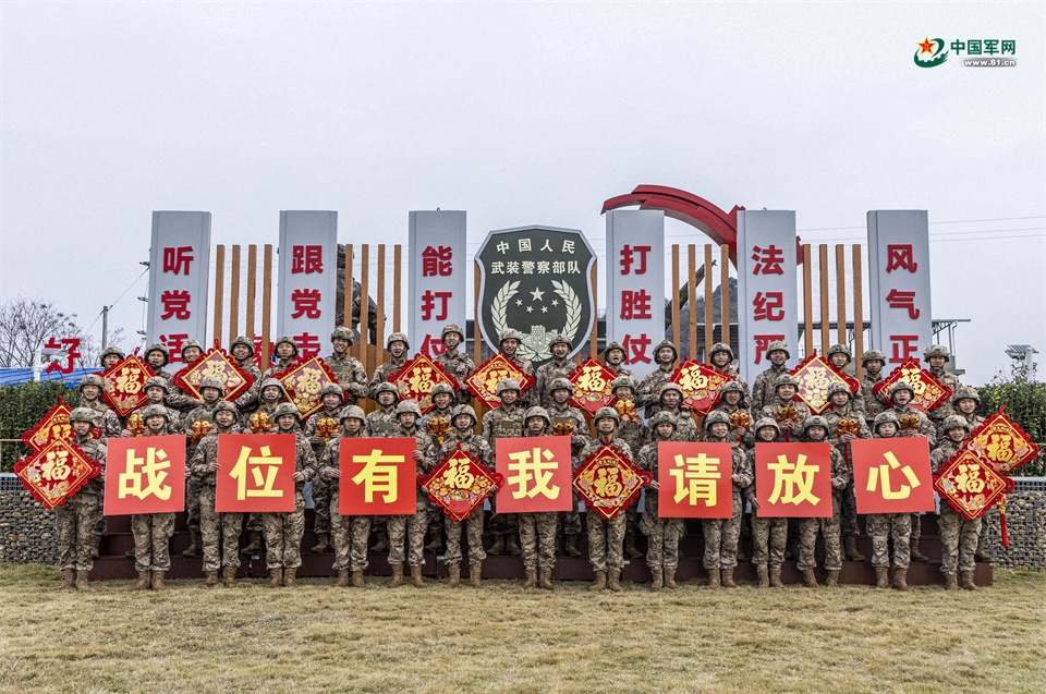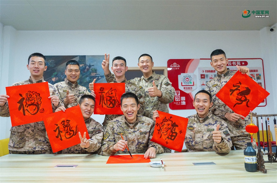 官兵們集體送上新春祝福。張辰飛 攝