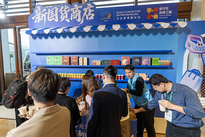 12月3日,在2025企業(yè)家博鰲論壇國民共“拾”光市集,參會嘉賓正在新國貨商店體驗(yàn)飲品。新華網(wǎng)記者 鐘奕攝