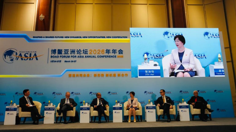 全國人大常委會委員長趙樂際26日下午在海南博鰲分別會見來華出席博鰲亞洲論壇2026年年會的新加坡總理黃循財、斯里蘭卡議長維克拉馬拉特納。