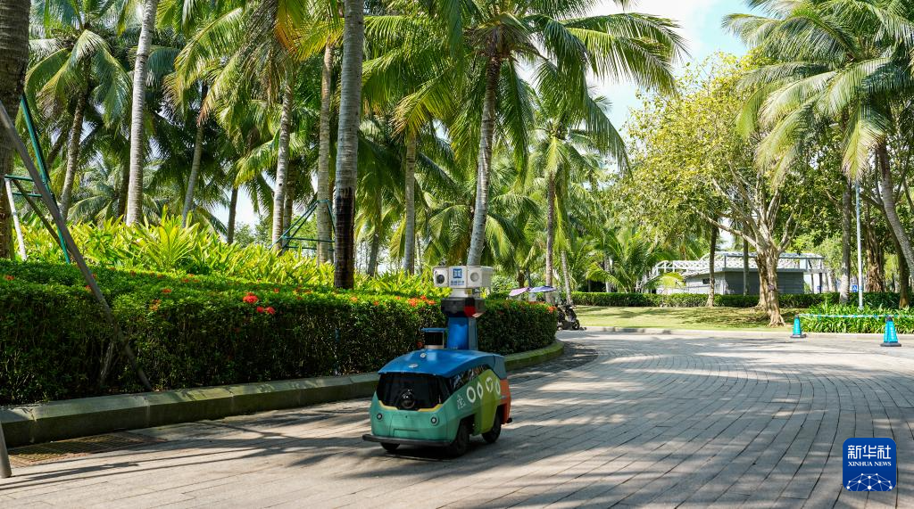 3月25日,無(wú)人巡邏車在中國(guó)(海南)南海博物館周邊巡邏。