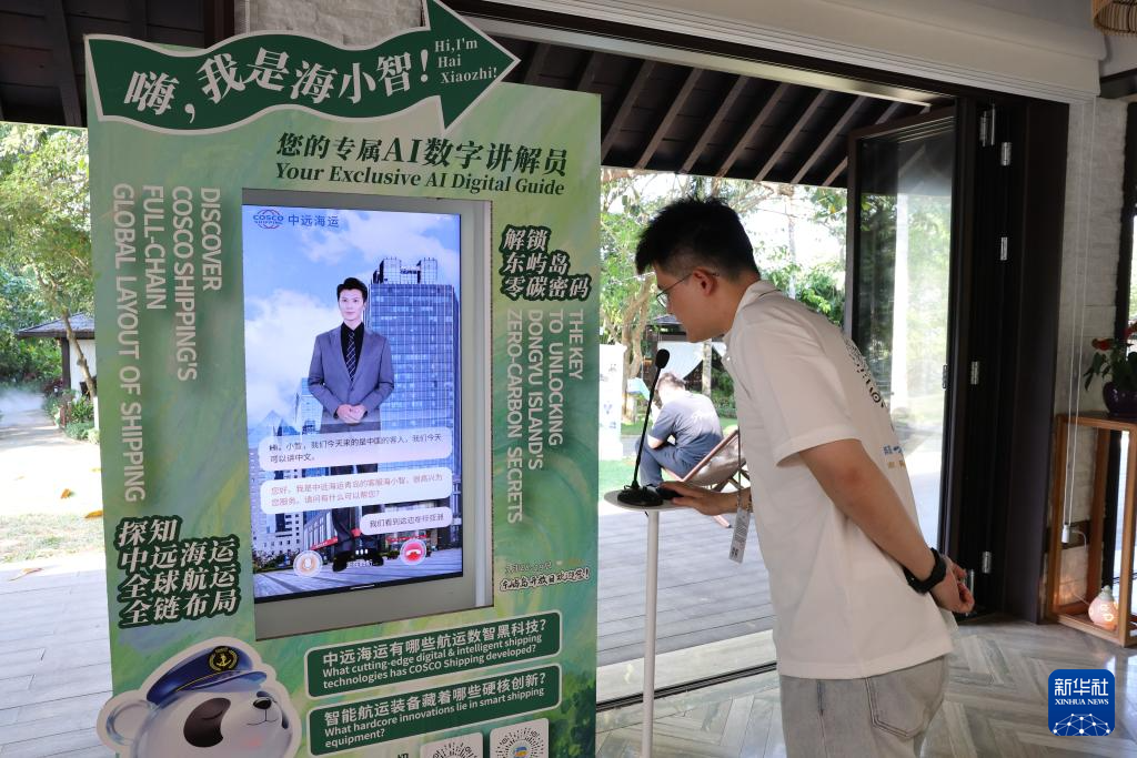 3月25日,工作人員在博鰲亞洲論壇年會(huì)會(huì)場(chǎng)與AI數(shù)字講解員對(duì)話。