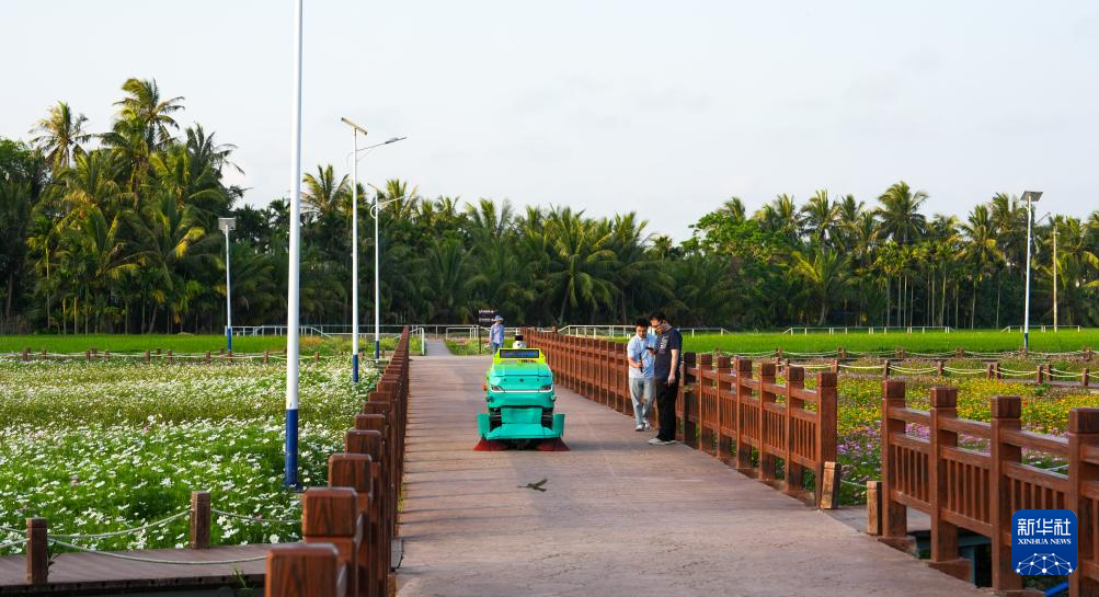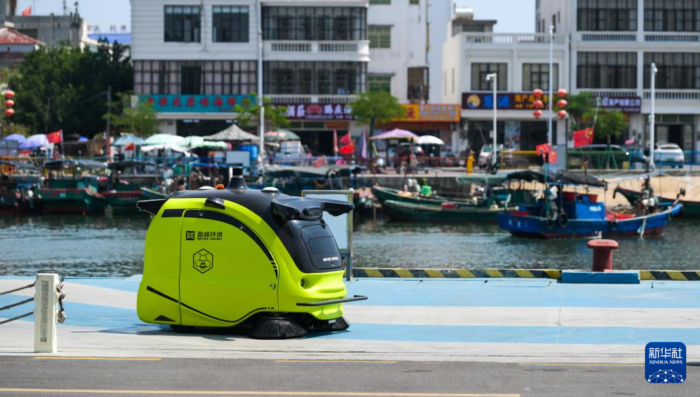 小蜜蜂智慧清潔機(jī)器人在海南省瓊海市潭門鎮(zhèn)排港村作業(yè)(3月25日攝)。
