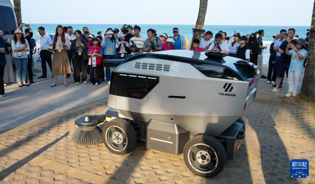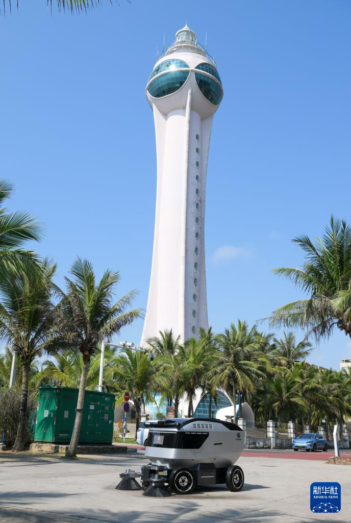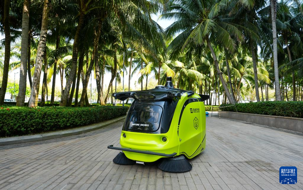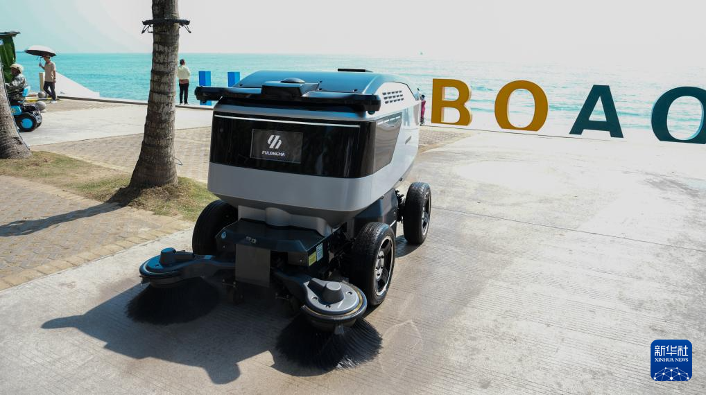 智能清掃機(jī)器人在海南省瓊海市博鰲鎮(zhèn)街頭作業(yè)(3月25日攝)。