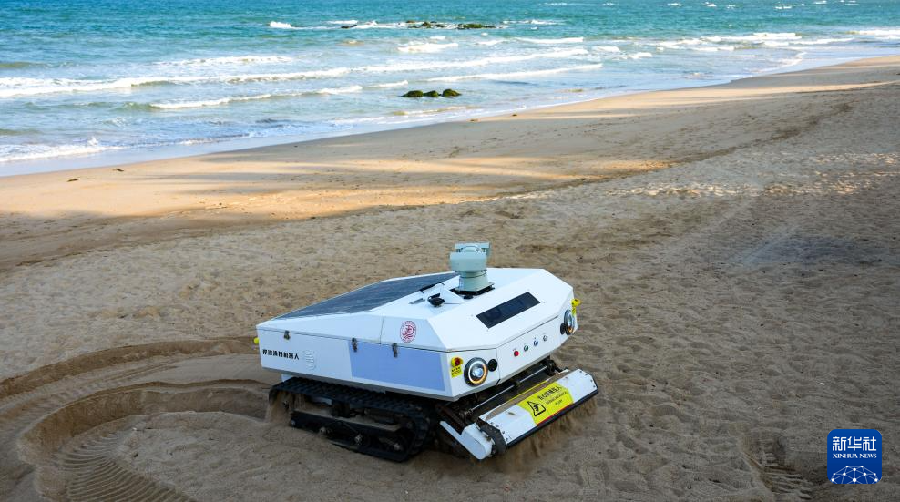 岸灘清掃機(jī)器人在海南省瓊海市博鰲鎮(zhèn)海灘作業(yè)(3月23日攝)。