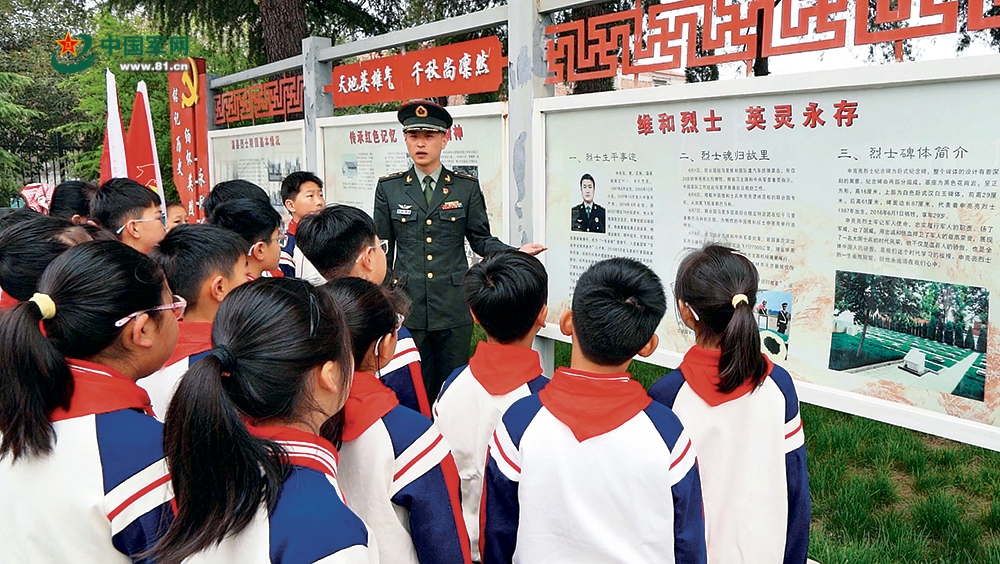 “申亮亮班”第3任班長(zhǎng)湯宏華正在給前來烈士陵園祭掃的溫縣城內(nèi)小學(xué)的學(xué)生們講述“人民英雄”申亮亮的事跡。解放軍報(bào)記者 汪飛 攝