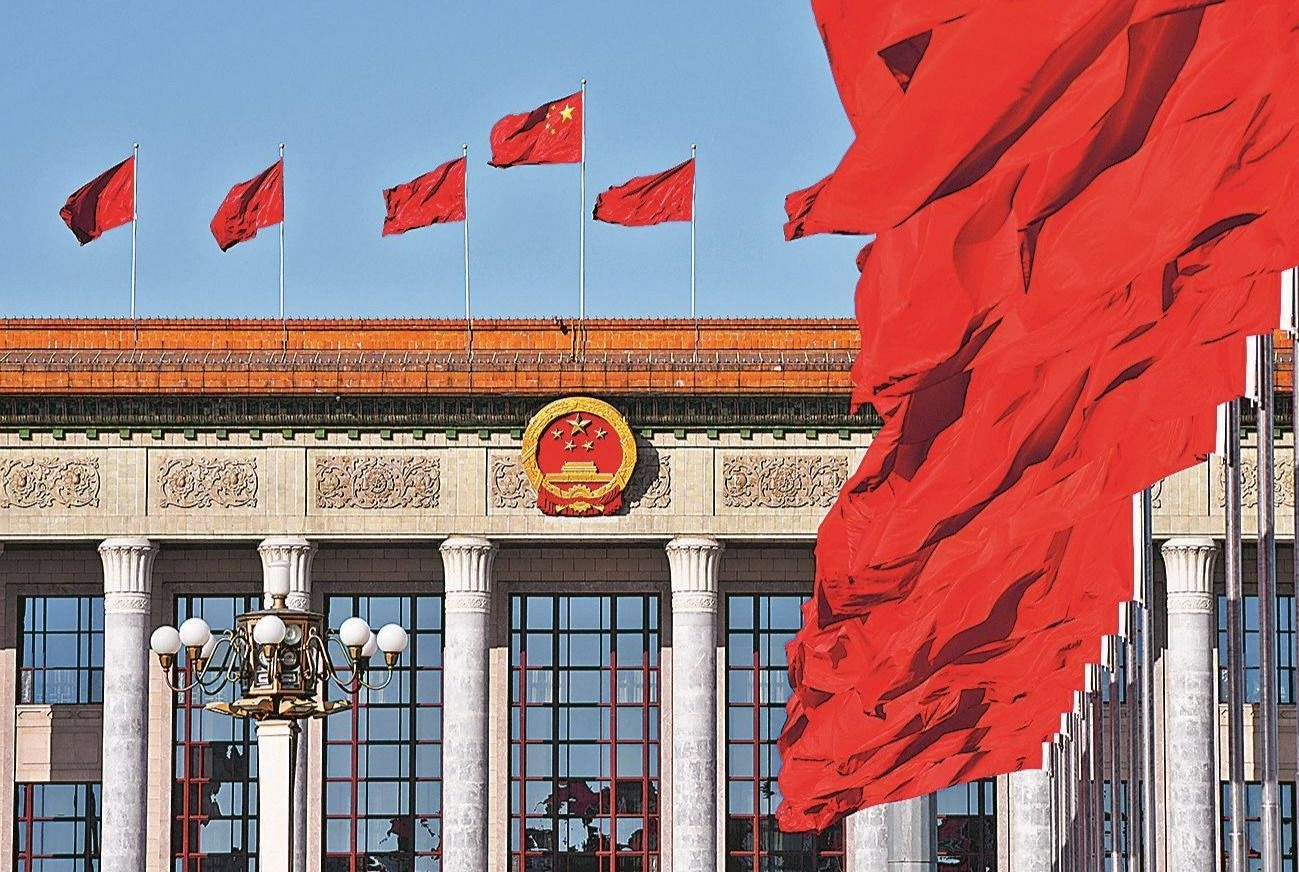 人民大會(huì)堂東門外廣場上,紅旗迎風(fēng)招展。解放軍報(bào)記者 劉妍 攝