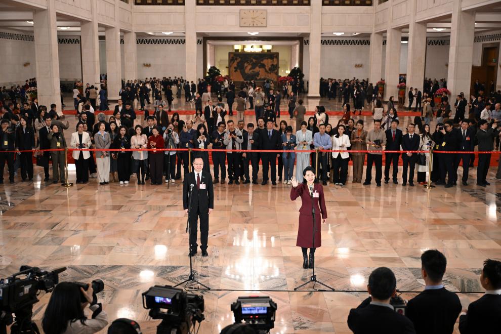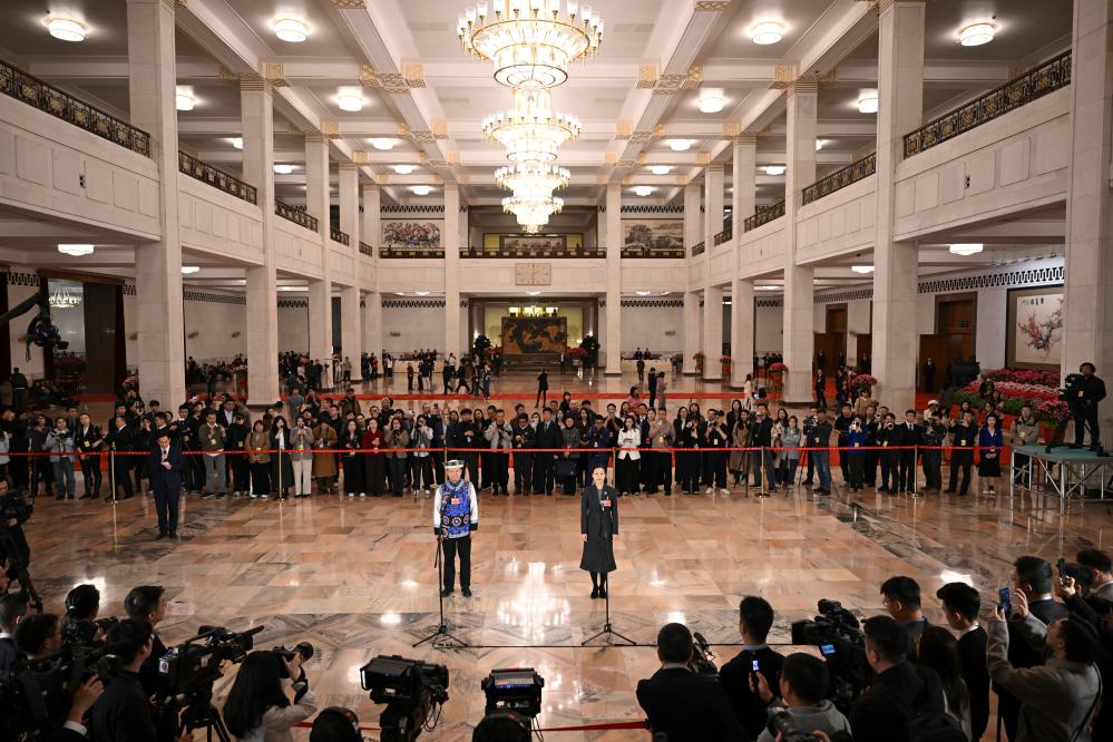 3月12日,第十四屆全國人民代表大會第四次會議第三場“代表通道”集中采訪活動在北京人民大會堂舉行。