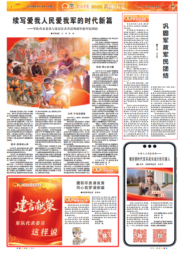 履職盡責謀良策,同心筑夢譜新篇。今年全國兩會,軍隊代表委員以飽滿熱情、昂揚風貌,走入公眾視野。過去一年,軍隊代表委員積極深入基層調研,將官兵心聲凝結成一份份議案、提案和建議。