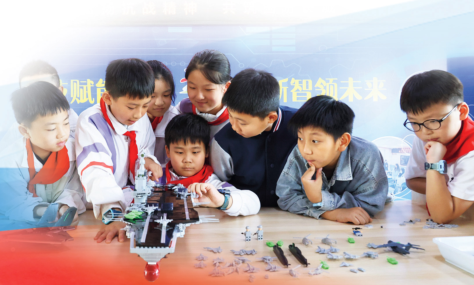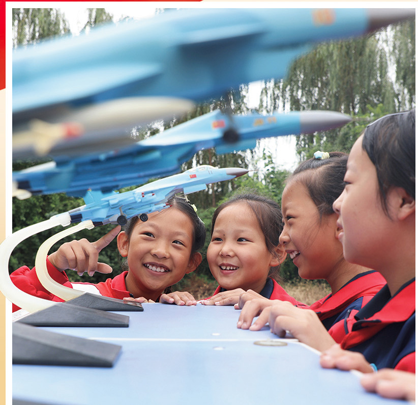 江蘇省連云港市海州區(qū)大慶路小學(xué)學(xué)生通過組裝裝備模型,增強國防觀念。