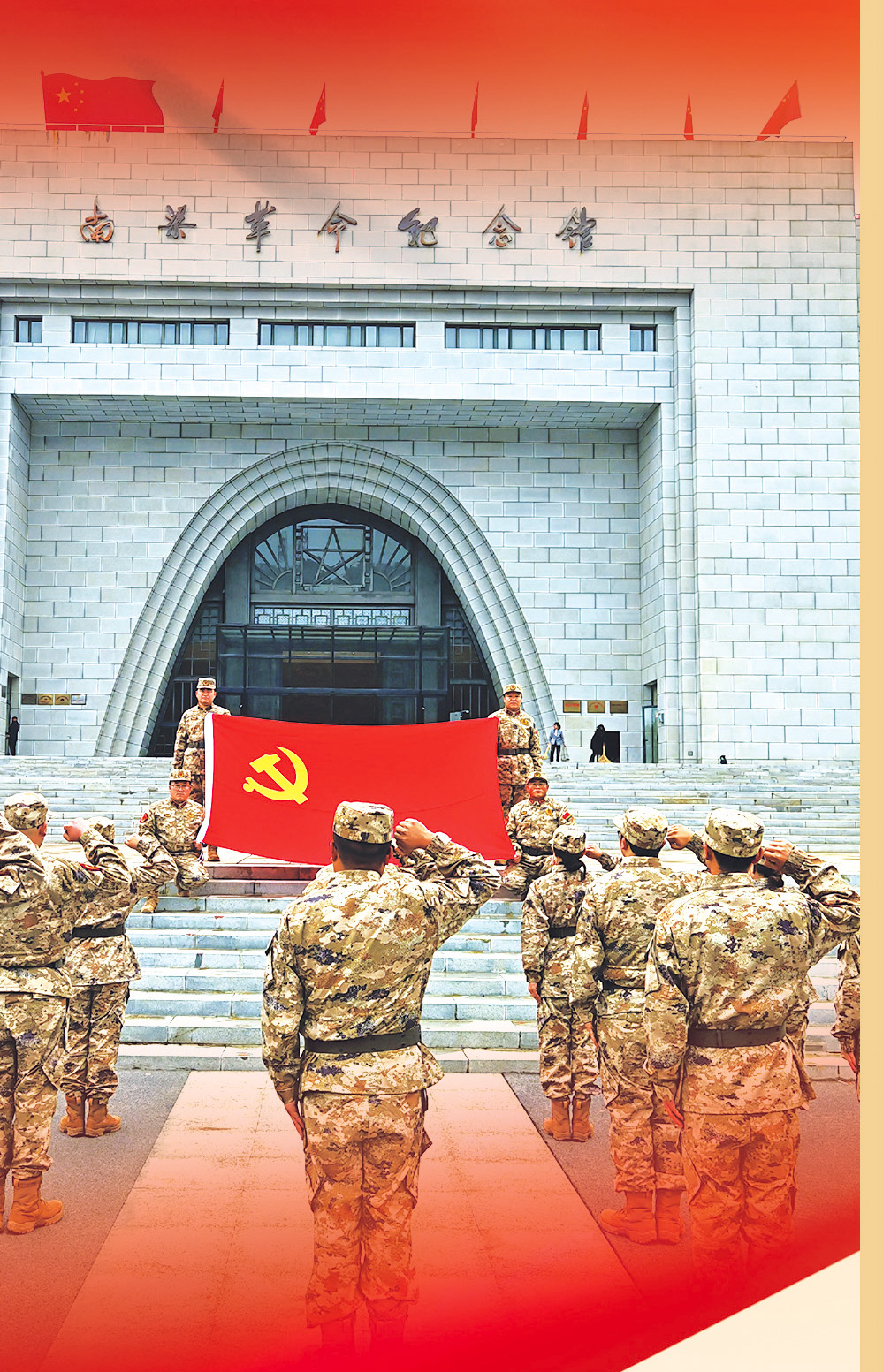 甘肅省慶陽軍分區(qū)組織民兵開展傳統(tǒng)教育、強化戰(zhàn)斗精神。圖為在南梁革命紀念館前,民兵黨員重溫入黨誓詞。張建平攝