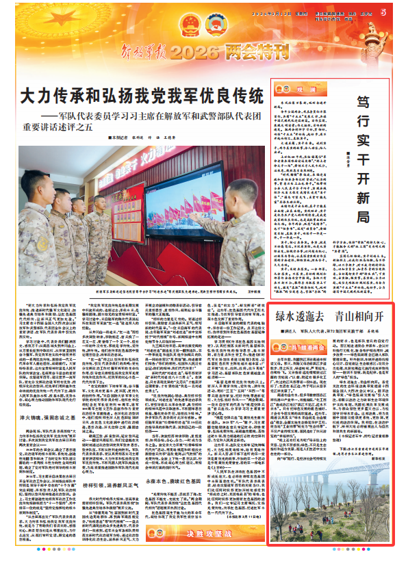 向“綠”而行,是經(jīng)濟社會可持續(xù)發(fā)展的要求,也是部隊官兵的自覺行動。營區(qū)短途通勤合并派車,會議材料推行無紙化,裝備維護精準用料、減少浪費……綠色低碳理念已融入部隊管理日常。野外駐訓,車輛開進路線精心設計,自覺避讓生態(tài)敏感區(qū);垃圾分類處理,水源地周邊無油污或廢棄物殘留……駐訓不留痕,既是紀律,也是軍人的“綠色”擔當。
