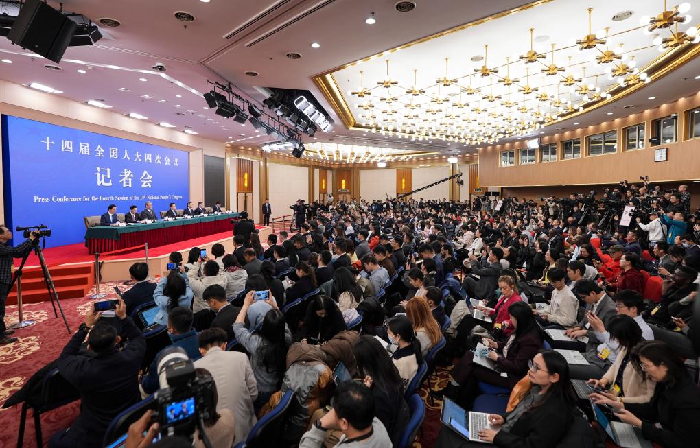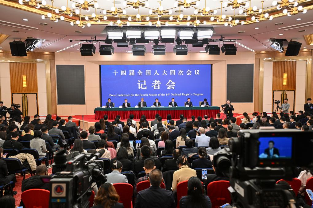 3月6日,十四屆全國人大四次會議在北京梅地亞中心新聞發(fā)布廳舉行記者會。國家發(fā)展和改革委員會主任鄭柵潔、財政部部長藍佛安、商務部部長王文濤、中國人民銀行行長潘功勝、中國證券監(jiān)督管理委員會主席吳清就發(fā)展改革、財政預算、商務、金融證券等相關問題回答中外記者提問。