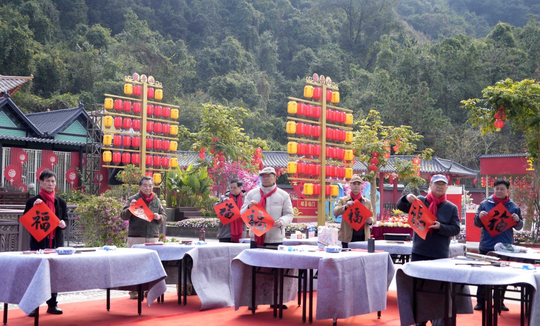 接福帖、貼春聯(lián)是春節(jié)的傳統(tǒng)習(xí)俗,作為粵港澳地區(qū)知名的福山勝境,觀音山多年來堅(jiān)持在新春來臨之際舉辦揮春送福活動,為市民游客免費(fèi)送上手寫的新春祝福,這一傳統(tǒng)也成為景區(qū)迎新春的特色活動。