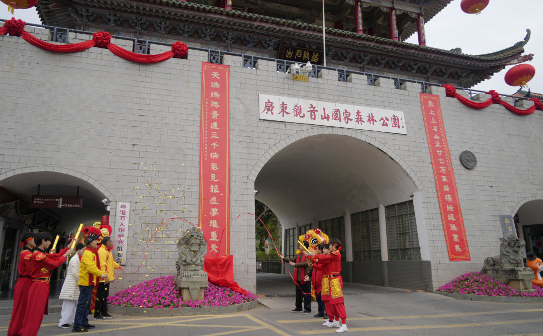 楹聯(lián)迎春,翰墨送福。2月1日,東莞觀音山舉行了馬年春聯(lián)頒獎(jiǎng)暨揭聯(lián)儀式,兩副火紅的春聯(lián),正式亮相觀音山門樓與福緣門。鑼鼓醒獅相伴,楹聯(lián)名家們現(xiàn)場揮春送福,免費(fèi)送春聯(lián),“福祿壽喜財(cái)”五福NPC天團(tuán)現(xiàn)場助陣,吸引眾多市民游客現(xiàn)場圍觀。觀音山年味兒滿滿的新春活動,也就此拉開東莞丙午馬年新春的序幕。