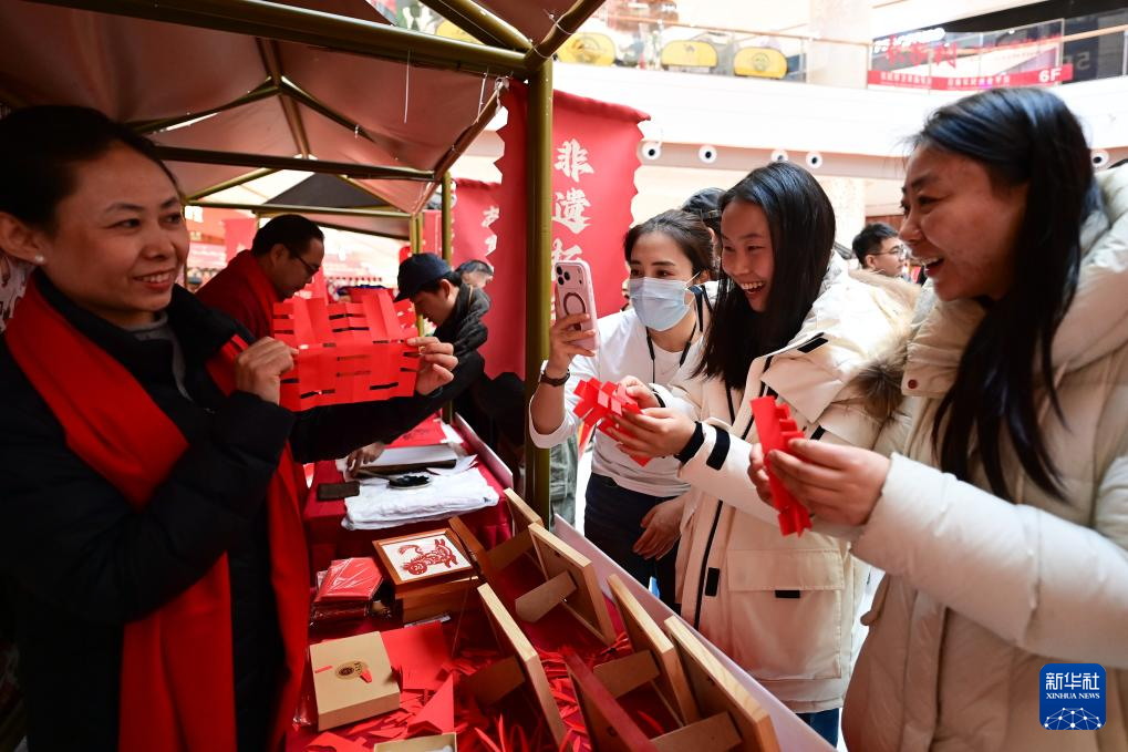 2月7日,游客在活動(dòng)現(xiàn)場體驗(yàn)剪紙。