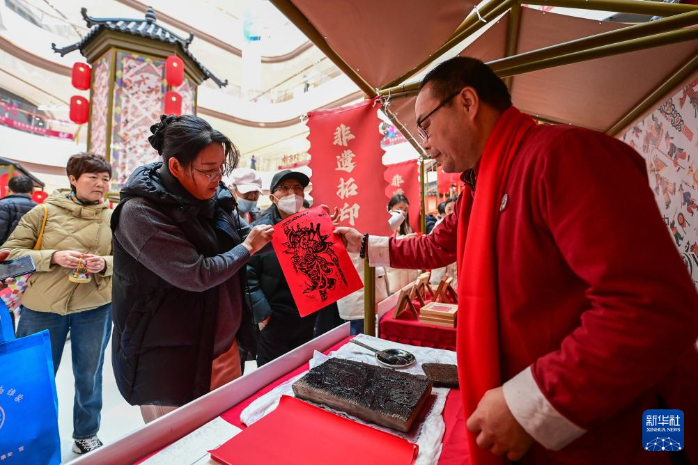 2月7日,游客在活動(dòng)現(xiàn)場體驗(yàn)?zāi)戤嬐赜 ?/p>