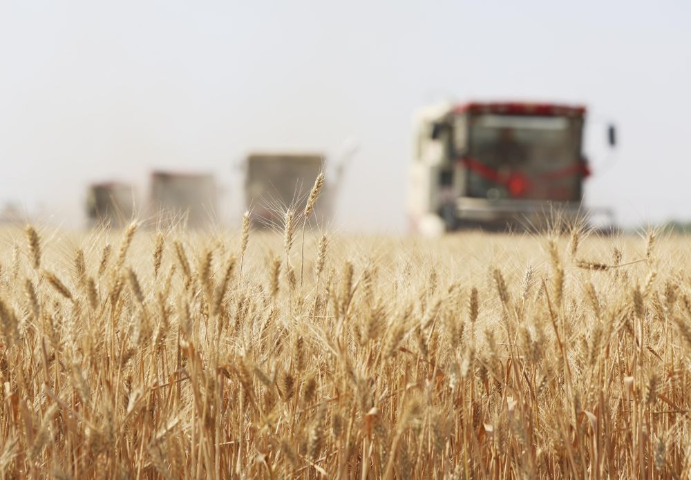 2025年6月10日,河北省石家莊市欒城區(qū)柳林屯鄉(xiāng)東牛村村民駕駛農(nóng)機(jī)收割小麥。新華社發(fā)(梁子棟 攝)