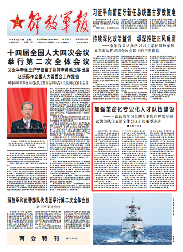 習(xí)主席在出席十四屆全國(guó)人大四次會(huì)議解放軍和武警部隊(duì)代表團(tuán)全體會(huì)議時(shí)強(qiáng)調(diào),要加強(qiáng)革命化專(zhuān)業(yè)化人才隊(duì)伍建設(shè)。習(xí)主席的重要講話(huà),抓住了完成“十五五”時(shí)期目標(biāo)任務(wù)的關(guān)鍵因素,對(duì)做好我軍人才工作提出新部署新要求,為全面加強(qiáng)新時(shí)代我軍人才工作提供了行動(dòng)指南和根本遵循。