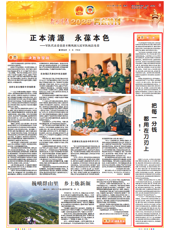 習(xí)主席在出席十四屆全國人大四次會議解放軍和武警部隊代表團(tuán)全體會議時強(qiáng)調(diào),要推進(jìn)軍費預(yù)算管理改革,搞好軍費供需動態(tài)平衡,強(qiáng)化經(jīng)費使用全鏈條管控和績效評估,把每一分錢都用在刀刃上。