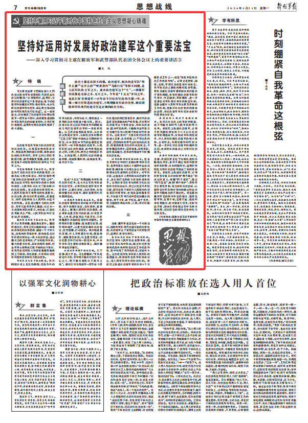 堅持好運用好發(fā)展好政治建軍這個重要法寶